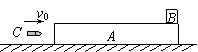 25.(20分)如图所示,质量为mA=4.9㎏,长为L=0.5m,高为h=0.2m的木块A放在水平地面上,质量为mB=1㎏的小木块B放在A的一端,质量为mC=0.1㎏,初速度为v0=100m/s的子弹C从A的另一端射入并和它一起以共同速度运动(射入时间忽略不计)。若A和B之间光滑,A和地面间摩擦因数为μ=0.25。求: