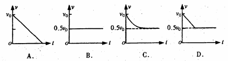 汽车在平直公路上以速度V0匀速行驶,发动机功率为P。快进入闹市区时,司机减小了油门,使汽车的功率立即减小一半并保持该功率继续行驶(汽车所受阻力不变)。下面四个图象中,哪个图象正确表示了从司机减小油门开始,汽车的速度与时间的关系: