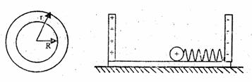 19.(13分)如图所示,两块带有等量异种电荷的平行金属板分别固定在绝缘板的两端,组成一带电框架,两平行金属板间的距离L=1m,框架右端带负电的金属板上固定一根原长为l0=0.5m的绝缘轻弹簧,框架的总质量M=9kg。由于带电,两金属板间产生了高电压U=2×103V。现用一质量为m=1kg、带电量q=+5×10-2c的带电小球。将弹簧压缩△l=0.2m后用线栓住,致使弹簧具有EP=65J的弹性势能。现使整个装置在光滑水平面上以v0=1m/s的速度向右运动,运动中栓小球的细线突然断裂致使小球被弹簧弹开。不计一切摩擦,且电势能的变化量等于电场力和相对于电场方向位移的乘积。求: