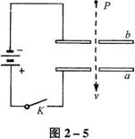 。现使a板不动,保持开关K打开或闭合,b板向上或向下平移一小段距离,相同的液滴仍从P点自由落下,先后穿过两个小孔后速度为