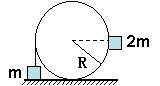 5.如图所示,质量分别为m和2m的两个小物体可视为质点,用轻质细线连接,跨过光滑圆柱体,轻的着地,重的恰好与圆心一样高,若无初速度地释放,则物体m上升的最大高度为: