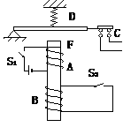 如图所示是一种延时开关。当S1闭合时(S2闭合着),电磁铁F将衔铁D吸下,将C线路接通。当S1断开时,由于电磁感应作用,D将延迟一段时间才被释放。则: