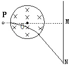 14、如图在P点有一电子发射源,静止的电子经一电压加速后,垂直击中屏幕上的M点,若在PM之间有一半径为R的圆形区域,该区域内存在着磁感强度为B的匀强磁场,且圆心O在PM的连线上,电子将击中屏幕的N点,已知电子电量为e,质量为m,O点与M点的距离为L,N点与M点的距离为