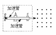 串列加速器是用来产生高能离子的装置。图中虚线框内为其主体的原理示意图,其中加速管的中部b处有很高的正电势U,a、c两端均有电极接地(电势为零).现将速度很低的负一价碳离子从a端输入,当离子到达b处时,可被设在b处的特殊装置将其电子剥离,成为n价正离子.而不改变其速度大小。这些正n价碳离子从c端飞出后进入一与其速度方向垂直的、磁感应强度为B的匀强磁场中,在磁场中做半径为R的圆周运动。已知碳离子的质量m=2.0×10-26 kg,U=7.5×105