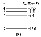 29.图7给出氢原子最低的四个能级.氢原子在这些能级之间跃迁所辐射的光子的频率最多有_6__ 种,其中最小的频率等于_1.6×1014…___ 赫.(保留两个数字)(95)