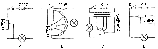 5.下图是4种亮度可调的台灯的电路示意图,它们所用的白炽灯泡相同,且都是“220V,40W”。当灯泡所消耗的功率都调至20瓦时,哪种台灯消耗的功率最小?