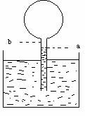 5、如图所示是伽利略设计的世界上第一个温度计示意图,上部是一个球形容器,里面有一定量的空气,下部是一根细管,细管插入带色液体中,制作时先给球形容器微微加热,跑出一些空气,插入液体中时,带色液体能上升到管内某一高度.测量时球形容器与所测物质接触。 已知外界大气压为p,并保持不变,所测温度为t1时, 管内液面在a位置,管内气体分子平均动能为Ek1 ,气体压强为P1,管内气体内能为E1,所测温度为t2时管内液面在b位置 ,其他三个量分别为Ek2、P2、E2。由此可知( )