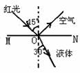 9、MN是空气与某种液体的分界面。一束红光由空气射到分界面,一部分光线被反射,一部分光线进入液体中。当入射角是45°时,折射角为30°,如图所示。以下判断正确的是( )