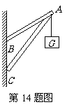 (15分)如图所示,轻质三角支架的AB=24cm,BC=20cm,AC=30cm,在支架的A点由绳悬挂一个重为50N的物体,求AB、AC杆受力的大小?