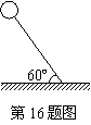 16、(15分)一个半径为1m的氢气球重为10N,所受的空气浮力大小为16N,用一根轻绳拴住,由于水平风力的作用,气球稳定时轻绳与地面成600角,如图所示,求: