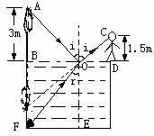 面高1.5m,如图14--15所示,河水折射率为4/3,则河的深度约多少 ?