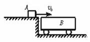 1、质量为m的物体A以速度v0在平台上运动,滑到与平台等高、质量为M的静止小车B上,小车B放在光滑水平地面上,物体A与B之间动摩擦因数为μ,不计A的体积,为使A在小车B上不致滑出,则小车B的长度l至少为多少?