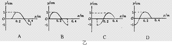 25.一质点以坐标原点 O 为中心位置在 y 轴上作简谐振动,其振动图象如图(甲)所示,振动在介质中产生的简谐横波沿 x 轴正方向传播,波速为 1.0 m/s。0.3 s后,此质点立即停止运动,再经过 0.1s 后的波形图是(乙)图中的