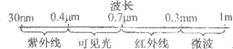 部分电磁波的大致波长范围如图所示。若要利用宽度与手指宽度相当的缝获得明显的衍射现象,可选用的电磁波为