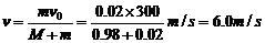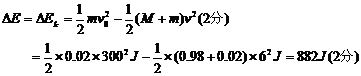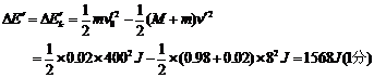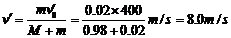 (2)设以v0′=400m/s的速度刚好能够射穿材质一样厚度为d′的另一个木块.则对以子弹和木块组成的系统,由动量守恒定律有![]()