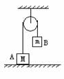 两个物体A和B,质量分别为M和m ,用跨过定滑轮的轻绳相连,A静止于地面上,如图所示:不计摩擦,A对绳的作用力的大小与地面对A的作用力的大小分别为:
