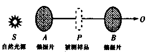 2004年“阜阳假奶粉”事件闹得沸沸扬扬。奶粉的碳水化合物(糖)的含量是一个重要指标,可以用“旋光”来测量糖溶液的浓度,从而鉴定含糖量。偏振光通过糖的水溶液后,偏振方向会相对于传播方向向左或向右旋转一个角度α,这一角度称为“旋光度”,α的值只与糖溶液的浓度有关,将α的测量值与标准值相比较,就能确定被测样品的含糖量。如图所示,S是自然光源,A、B是偏振片,转动B,使到达O处的光最强,然后将被测样品P置于A、B之间,则下列说法中正确的是:( )
