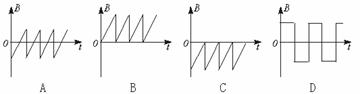 如图所示,是电视机的显像管的结构示意图,荧光屏平面位于坐标平面xOz,y轴是显像管的纵轴线。位于显像管尾部的灯丝被电流加热后会有电子逸出,这些电子在加速电压的作用下以很高的速度沿y轴向y轴正方向射出,构成了显像管的“电子枪”。如果没有其它力的作用,从电子枪发射出的高速电子将做匀速直线运动打到坐标原点O,使荧光屏的正中间出现一个亮点。当在显像管的管颈处的较小区域(图中B部分)加沿z轴正方向的磁场(偏转磁场),亮点将偏离原点O而打在x轴上的某一点,偏离的方向和距离大小依赖于磁场的磁感应强度B。为使荧光屏上出现沿x轴的一条贯穿全屏的水平亮线(电子束的水平扫描运动),偏转磁场的磁感应强度随时间变化的规律是下列情况的哪一个?