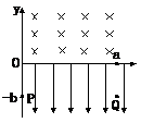 [例3]如图所示的xoy坐标系中,x轴上方有指向纸内的匀强磁场,磁感强度为B,x轴下方有沿-y方向的匀强电场。质量为m,带电为-q的粒子从坐标(0,-b)的P点出发,依次在电场和磁场中往复运动,最后以到达坐标为(a,-b)的Q点为止计,如图所示,求:
