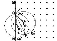 (2)如下图所示,以OP为弦,可画两个半径相同的圆,分别表示在P点相遇的两个粒子的轨道。圆心和直径分别为O1、O2和OO1Q1、OO2Q2,在O处两个圆的切线分别表示两个粒子的射入方向,用θ表示它们之间的夹角。由几何关系可知,