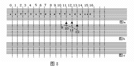 图8(a)中有一条均匀的绳,1、2、3、4、…是绳上一系列等间隔的点.现有一列简谐横波沿此绳传播.某时刻,绳上9、10、11、12四点的位置和运动方向如图8-11(b)所示(其他点的运动情况未画图),其中点12的位移为零,向上运动,点9的位移达到最大值.试在图8-11(c)中画出再经过