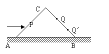 18、一个等腰直角三角形的截面如图所示,AB面镀银,一束细白光从AC面的P点沿平行于底面AB的方向射入棱镜后,其中有两种色光先经过AB面反射,再从BC面的Q点和Q′点射出。则下列说法中正确的是 ( B )