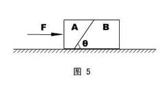 14.(本题18分)如图所示,两个木块A和B,质量分别为mA和mB,紧挨着并排放在水平桌面上,A、B间的接触面垂直于图中纸面且与水平成θ角。A、B间的接触面是光滑的,但它们与水平桌面间有摩擦,静摩擦系数和滑动摩擦系数均为μ。开始时A、B都静止,现施一水平推力F于A,要使A、B向右加速运动且A、B间之间不发生相对滑动,则: