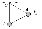 两个相同的小球A和B,质量均为m,用长度相同的两根细线把A、B两球悬挂在水平天花板上,再用长度相同的细线连接A、B如图,现用水平力F拉住小球A,三根细线均被拉直,OB线处于竖