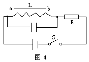7.如图4所示,线圈自感系数为L,其电阻不计,电容器的电容为C,电键S是闭合的,现将S突然断开,并开始计时,以下说法正确的是: