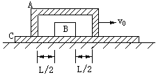 10、(12分)一段凹槽A倒扣在水平长木板C上,槽内有一小物块B,它到槽两内侧的距离均为l/2,如图所示。木板位于光滑水平的桌面上,槽与木板间的摩擦不计,小物块与木板间的摩擦系数为μ。A、B、C三者质量相等,原来都静止。现使槽A以大小为v0的初速向右运动,已知v0<