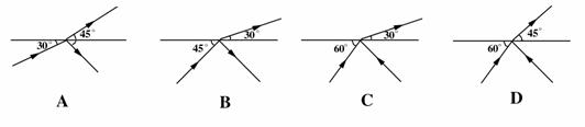 ,光线从此介质射向与空气的界面,下图中光路图正确的是( )