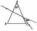 13、如图所示,三棱镜的顶角是30°,光线与AB面成90°射入,由AC面射出,测得偏向角是30°,该三棱镜的折射率是 ,光在三棱镜内的速度为 。