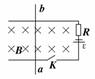15.如右图示,位于水平面内的两条平行导轨相距l=0.3米;电源电动势为ε=6 伏,内阻不计,R=5欧;金属棒ab置于导轨上,且与导轨垂直;整个装置放在图示方向的匀强磁场中,当闭合K后,金属棒运动时所受的摩擦力阻力f=0.1牛,求ab棒的最大速度vmax和vmax对应的磁 感应强度B(金属棒和导轨的电阻不计)。