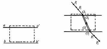 设P1、P2、P3、P4是正确操作所得到的四枚大头针的位置,画出光路图后可知,即使玻璃砖向上平移一些,如上图右所示,实际的入射角没有改变。实际的折射光线是O1O′1,而现在误把O2O′2作为折射光线,由于O1O′1平行于O2O′2,所以折射角没有改变,因此折射率不变。