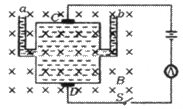 ,将容器置于一匀强磁场中,磁场方向垂直纸面向里,当开关断开时,竖直管子a、b中的液面高度相同;开关S闭合后,a、b管中液面将出现高度差.问: