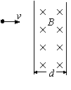 如图,一个不计重力,带电量为q,质量为m的负的带电粒子,垂直飞入一宽度为d,磁感强度为B的匀强磁场,要使粒子能穿过该磁场区域。问: