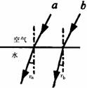如图所示,a与b是两束平行的颜色不同的单色光,它们从空气中射入水中的折射角分别为ra、rb,且ra>rb,则