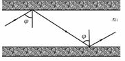 32. (05年北京西城区)据报道:2008年北京奥运会,光纤通信网将覆盖所有奥运场馆,为各项比赛提供安全可靠的通信服务.光纤通信利用光的全反射将大量信息高速传输.如图6-23-22所示,一条圆柱形的光导纤维,长为L,它的玻璃芯的折射率为n1,外层材料的折射率为n2,光在空气中的传播速度为c,若光从它的一端射入经全反射后从另一端射出所需的最长时间为t,则下列说法正确的是(图中所标的φ为全反射的临界角,其中sinφ=