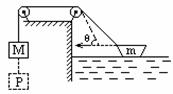 2. 如图,一绳绕过两个滑轮,一端系着质量为M的重物,另一端系着质量为m的浮于水上的小船,开始时小船静止,并设法使重物也静止.释放重物后,重物下降一段距离到达p处时,小船的速度为υ,此时系在船上的斜绳与水平方向所夹的锐角为θ.若不计滑轮、绳的质量及一切阻力,求上述过程中重力对质量为M的重物做的功。