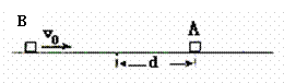 14.(10分) 对于两物体碰撞前后速度在同一直线上,且无机械能损失的碰撞过程,可以简化为如下模型:A、B两物体位于光滑水平面上,仅限于沿同一直线运动。当它们之间的距离大于等于某一定值d时.相互作用力为零;当它们之间的距离小于d时,存在大小恒为F的斥力。设A物休质量m1=1.0kg,开始时静止在直线上某点;B物体质量m2=3.0kg,以速度v0从远处沿该直线向A运动,如图所示。若d=0.10m, F=0.60N,v0=0.20m/s,求: