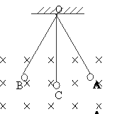 如图所示,绝缘摆线一端拴着带负电的小球,另一端悬于O点,磁场的方向垂直纸面向里,小球在A、B 间来回摆动,则下列说法正确的是
