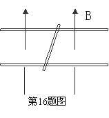 16. 如图所示, 在同一水平面上的两导轨相互平行,并处在竖直向上的匀强磁场中,一根质量为3.6㎏、有效长度为2 m的金属棒放在导轨上,当金属棒中的电流为2 A 时,金属棒作匀速运动;当金属棒中的电流增加到8A时,金属棒的加速度为2m/s2 ,则磁场的磁感应强度B=