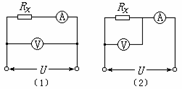 3. 先后按图中(1)、(2)所示电路测同一未知电阻阻值Rx,已知两电路的路端电压恒定不变,若按图(1)所示电路测得电压表示数为6V,电流表示数为2mA,那么按图(2)所示电路测得的结果应有 ( )