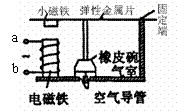 9. 如图所示是利用电磁原理造成的充气泵结构示意图,其工作原理类似打点计时器。当电流从电磁铁的接线柱a流入而吸引小磁铁向下运动时,以下选项中正确的是( )