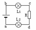 [例题]如右图所示电路中,若两只灯泡L1、L2均不亮,用电压表检查电路时,测得Uac=Ubd=0,且Ucd=Uab>0,则故障的原因可能是( )