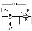 如图所示,电池参数为E、r,当滑线电阻的动片P由a向b滑动的过程中,安培表、伏特表的示数变化情况 [ ]