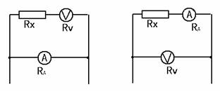 伏安法测电阻,电流表与伏特表必须考虑电表的内阻,因此其电路结构有两种方式。