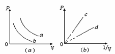 (5分)某学生分别在早晨和中午用注射器各做了一次“验证玻意耳定律”的实验,两次所封闭的空气质量相同,中午气温高于早晨,他将实验结果绘成如图(a)所示的P-V图象和图(b)所示的P-