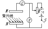 如图所示是测定光电效应产生的光电子荷质比的简要实验原理图,两块平行板相距为d,其中N为金属板,受紫外线照射后,将发射沿不同方向运动的光电子,形成电流,从而引起电流计指针偏转,若调节R逐渐增大极板间电压,可以发现电流逐渐减小,当电压表示数为U时,电流恰好为零。切断开关,在MN间加垂直于纸面的匀强磁场,逐渐增大磁感强度,也能使电流为零,当磁感强度为B时,电流恰为零。试求光电子的荷质比e/m。