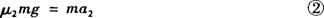 桌布抽出后,盘在桌面上作匀减速运动,以a2表示加速度的大小,有